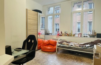 A deux pas de la Grand'Place, 1 chambre à louer rénovée et salle de douche avec WC et lavabo privatif et espace séjour, nouvel espace cuisine commun. Nouveaux châssis double vitrage en PVC. 600 + charges