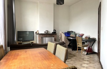 A proximité du centre-ville de Tournai, appartement à louer au premier étage, comprenant un séjour avec une cuisine semi-ouverte, une salle de bain avec une baignoire, un lavabo et un WC, et une chambre. Double vitrage, poêle au gaz de ville et compteurs individuels, libre au 1er mai 2025